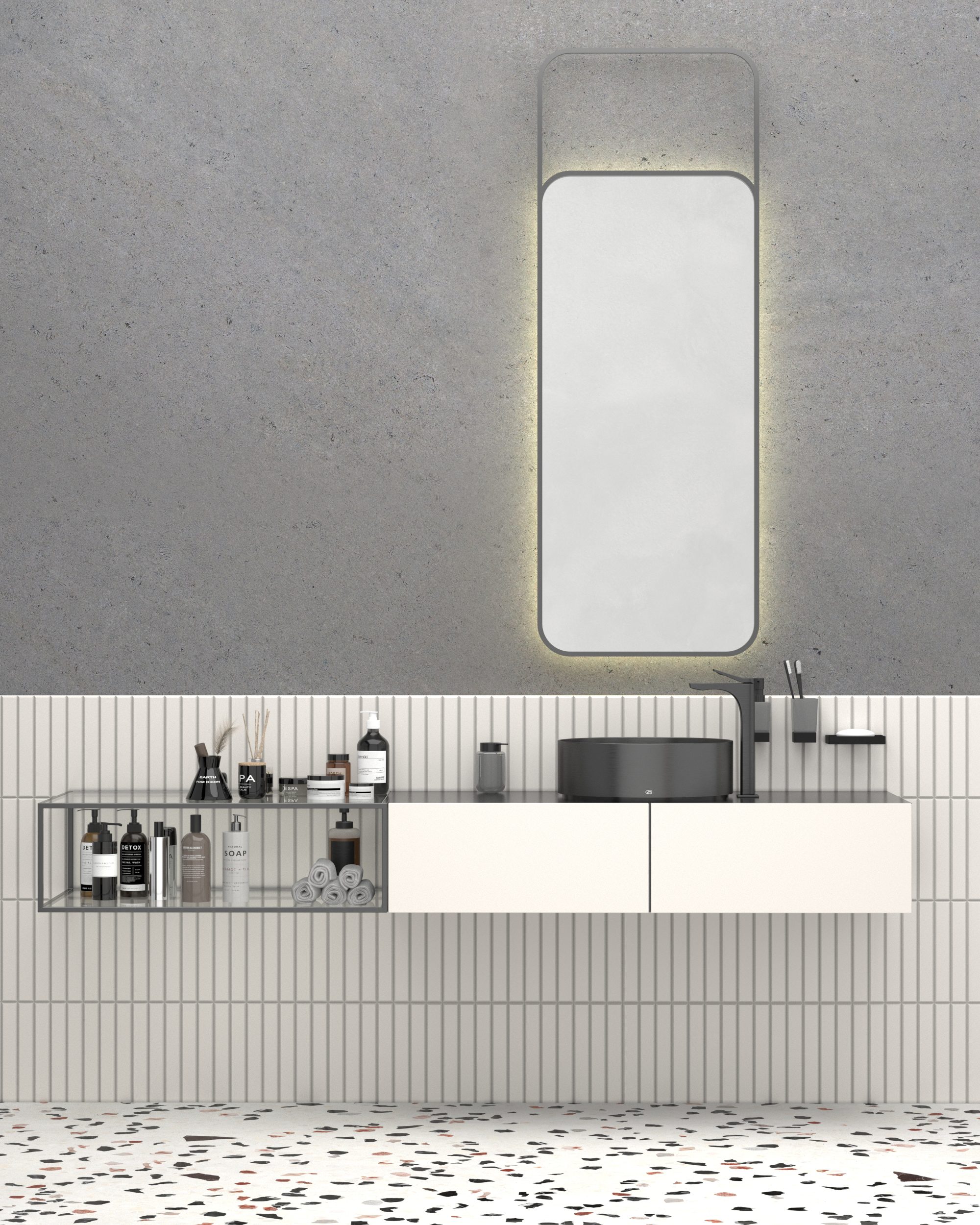 This is a complete kit of quartz sand primer Base Q (2.5kg), Microcemento Base (25kg, first coat of microcement), Microcemento Finish (25kg+25kg, 2 buckets, delicate finish), PU 2K Varnish TOP 890 (set 5l) and SILK PLASTER Venetian stainless trowel made by legendary Italian COME TOOLS. The microcement system is water borne using high quality raw materials. In case of PU varnish and sealer we use aliphatic polyurethane raw materials the best in the market.