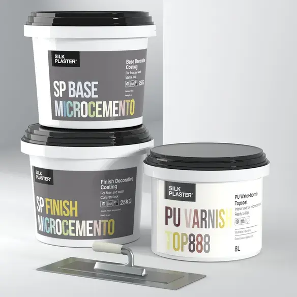 - SP Base Microcemento: Rough-textured base layer with excellent adhesion to substrates